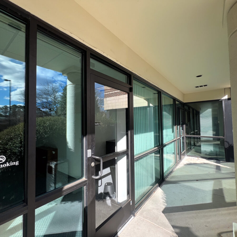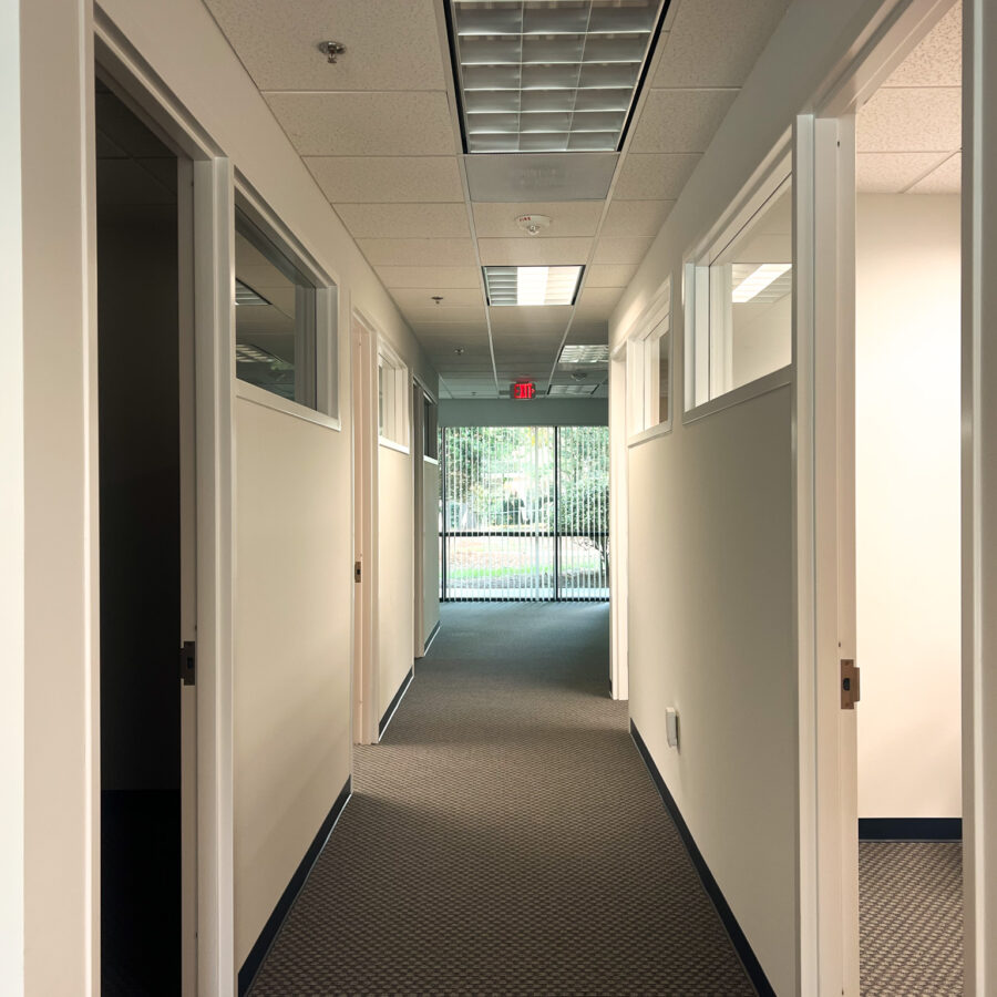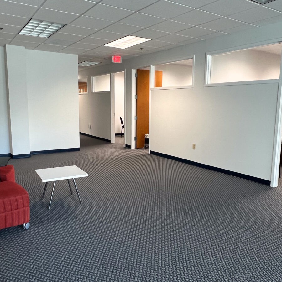 Suite 116 features a functional layout with eleven private offices and two open work areas, offering flexibility for a variety of users, including professional firms such as law, accounting, or consulting groups, wellness and counseling practices, creative or tech teams, or even an executive or regional office seeking a strong North Raleigh presence.